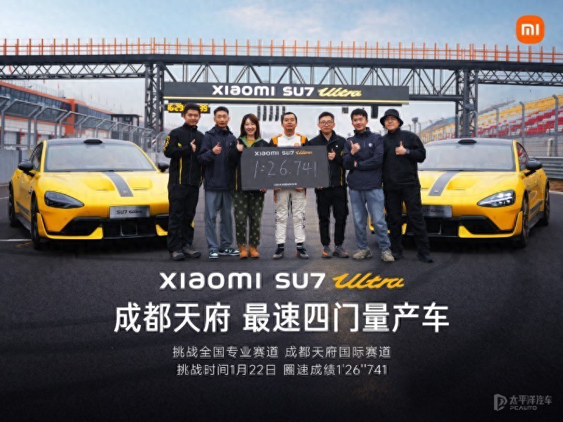 【太平洋汽车 行业频道】2月11日,小米汽车官方发布了小米SU7 Ultra(询底价|查参配)在成都天府赛道的圈速成绩,仅耗时1'26''741秒,成为了这条赛道上圈速榜上的最速四门量产车。