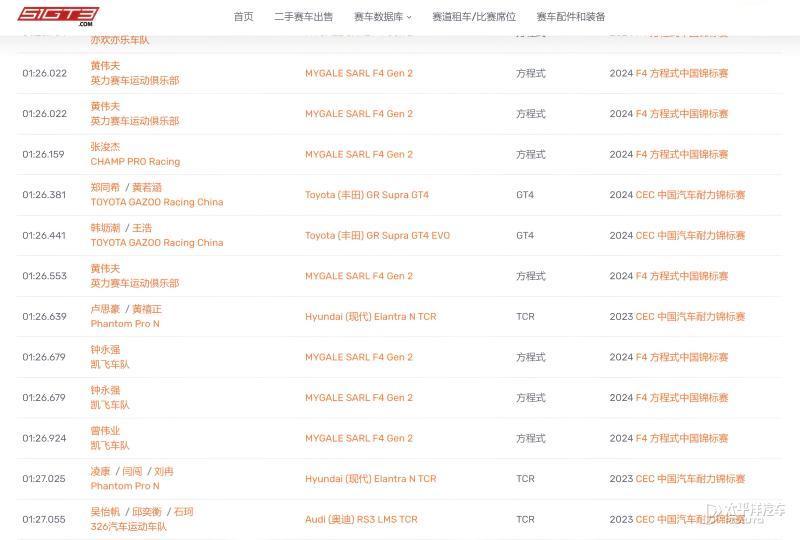 作为参考,我们从权威的51GT3赛道数据库获取信息进行对比,与小米SU7 Ultra圈速接近的作为对比,能跑出与小米 SU7 Ultra 相近圈速的,通常是F4方程式赛车,或是经过赛化改装的赛用TCR、GT4赛车。